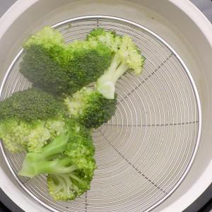 西兰花切成小块,放到沸水中焯1分半后捞出。